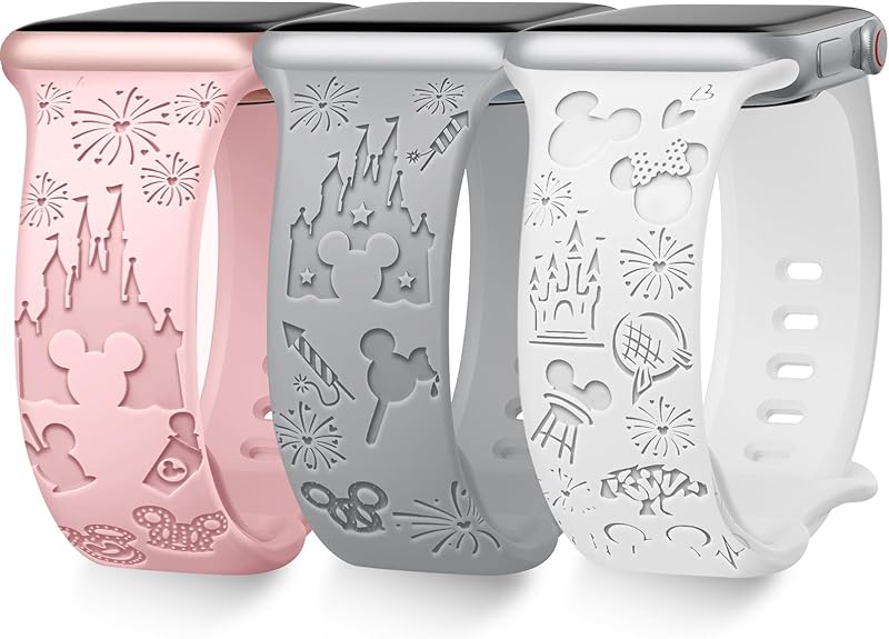 3 Pack Cartoon Engraved Band Compatible with Apple Watch Bands 40mm 44mm 41mm 38mm 45mm 42mm 49mm Women, Cute Pattern Strap Soft Silicone Wristbands for iWatch Series 8 7 6 SE 5 4 3 2 1 Ultra