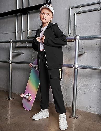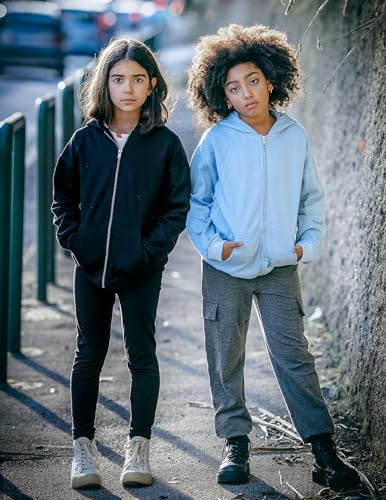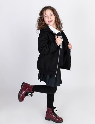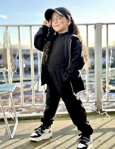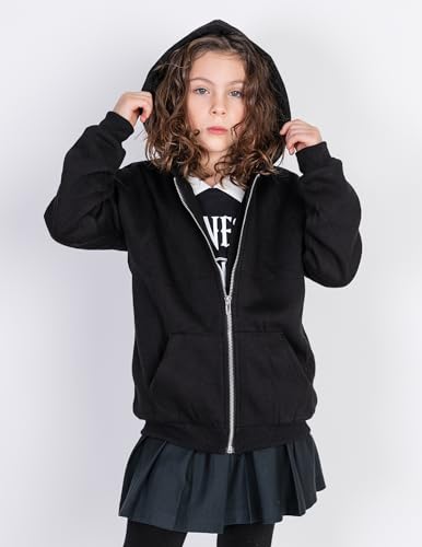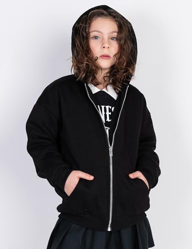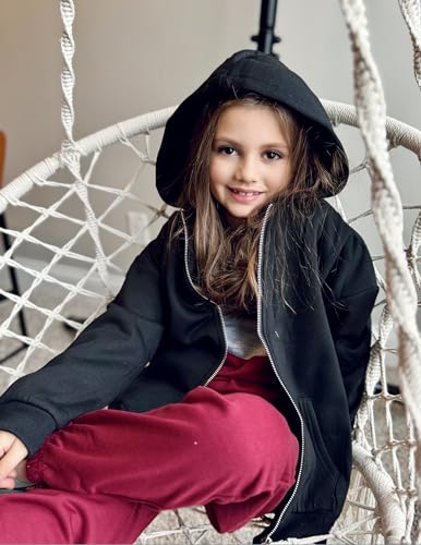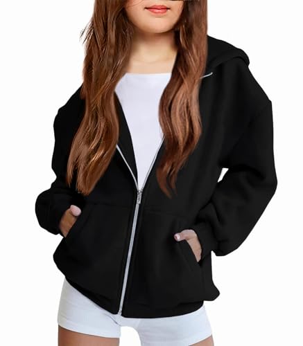 Arshiner Little Girls Fleece Full-Zip Hoodie Sweatshirt Black Winter Classic Sportswear With Kangaroo Pocket for 8-9 Years