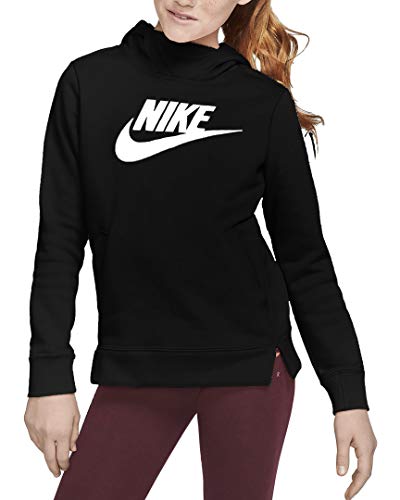Nike Girls NSW Pullover Hoodie (Black/White, Medium)