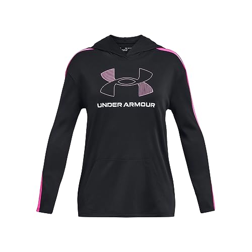 Under Armour Girls' Standard Tech Graphic Long Sleeve Hoodie, (001) Black / / Rebel Pink, Large