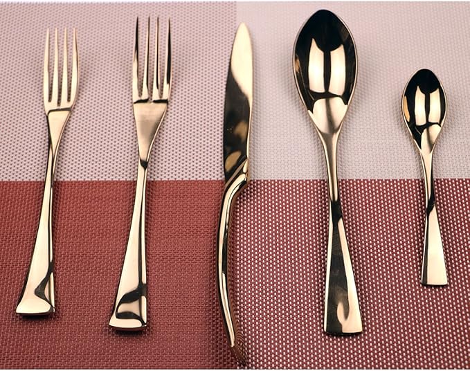 Cutlery Set, 5-Piece Mirror Polishing Rose Gold 18/10 Stainless Steel Dinnerware Flatware Sets, Service for 1, w/Dinnerware Knife, Forks, Soup Spoon, CoffeeSpoon, Dessert Fork