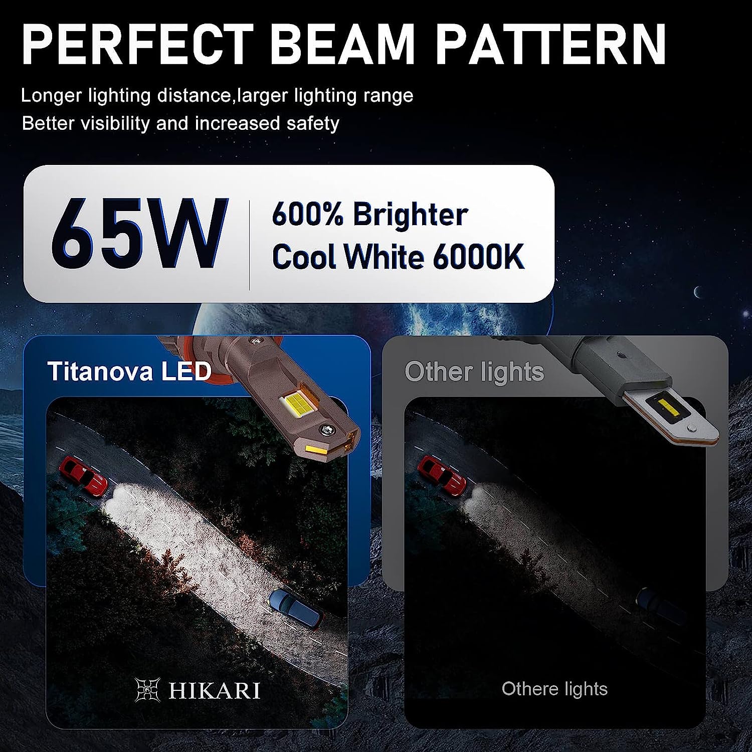 • ?????? ??????????& ????????? ??????. The HIKARI 2023 Future Series can guarantee the brightness of both the front and side lighting. It enables you to anticipate unexpected crises on the road, such as wild deer. At the same time, the customized light beam won't have any impact on oncoming traffic. Make sure you and your family drive safely.