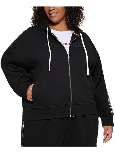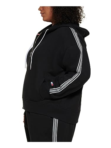 Tommy Hilfiger Sport Womens Plus Fleece Comfy Zip-Front Hoodie Black 2X