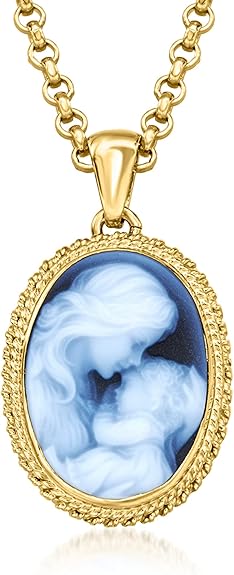 Ross-Simons Italian Black Agate Mother and Child Cameo Pendant Necklace in 18kt Gold Over Sterling. 18 inches