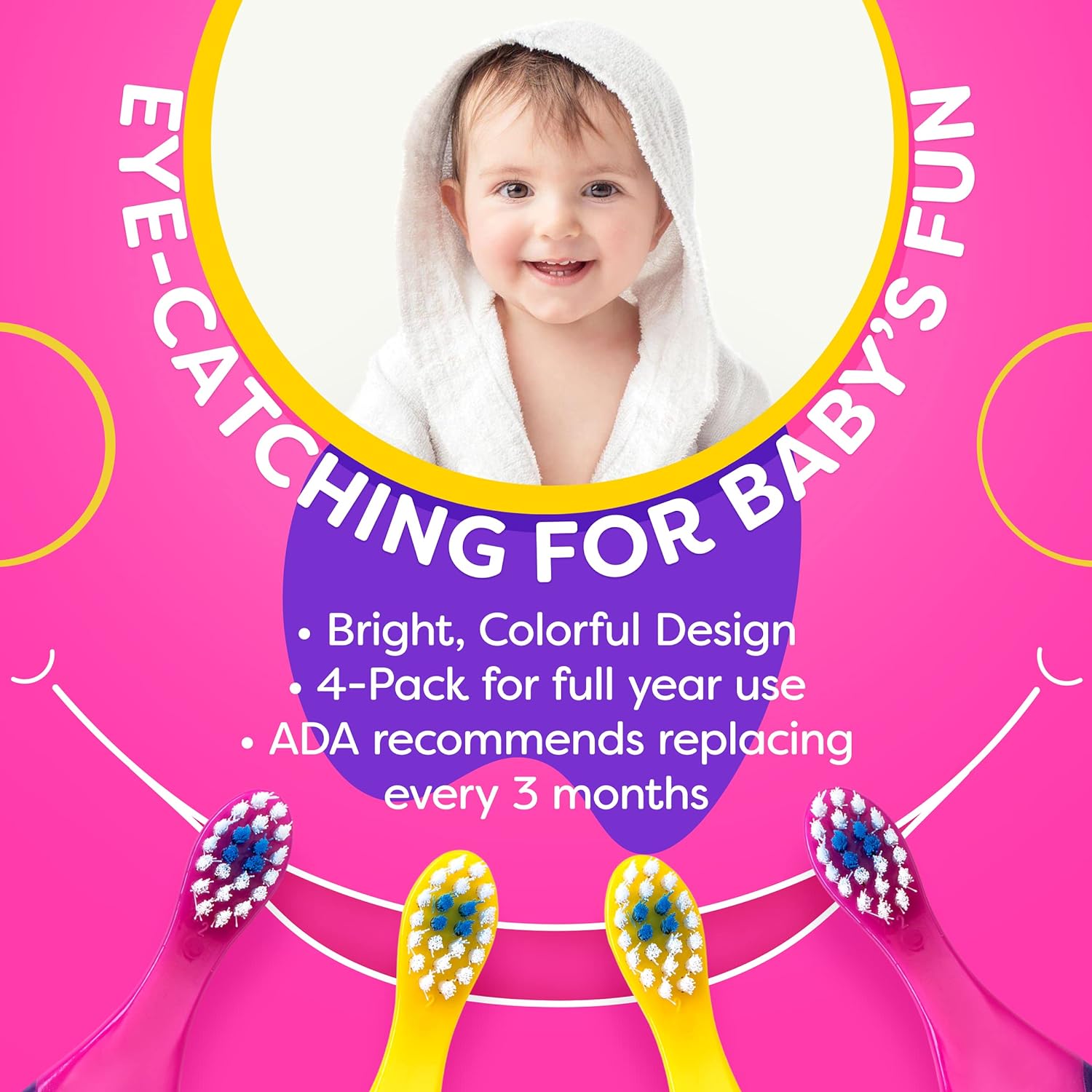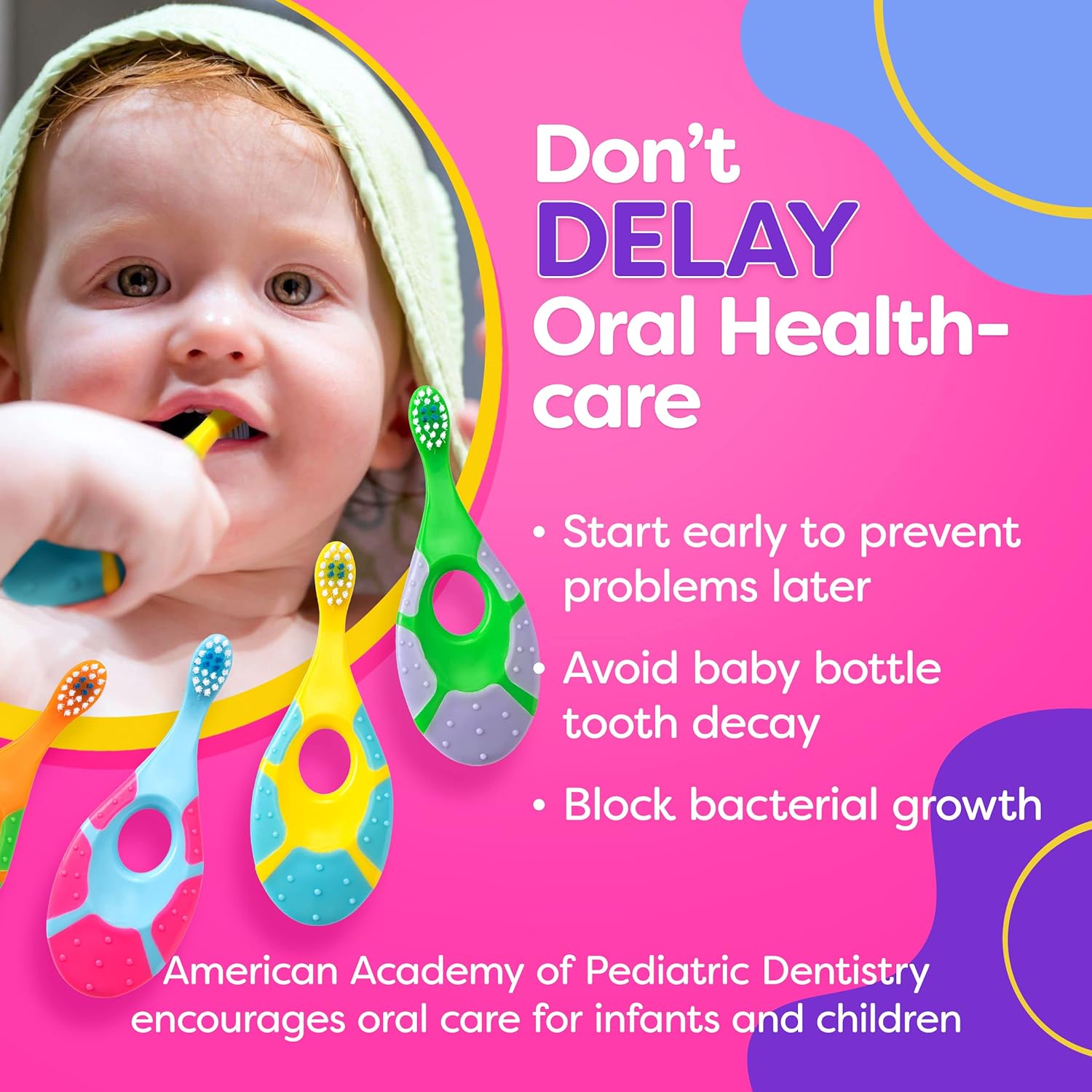 • ✅ BRING JOY TO EVERY HOME – If you’re still looking for a unique baby gift, we got you covered. All 4 of them are engineered to clean a baby’s first teeth and fit small mouths, just like theirs, ideal for babies from 0-3 years old, perfect for baby shower, birthday, registry gift, or no special occasion at all.