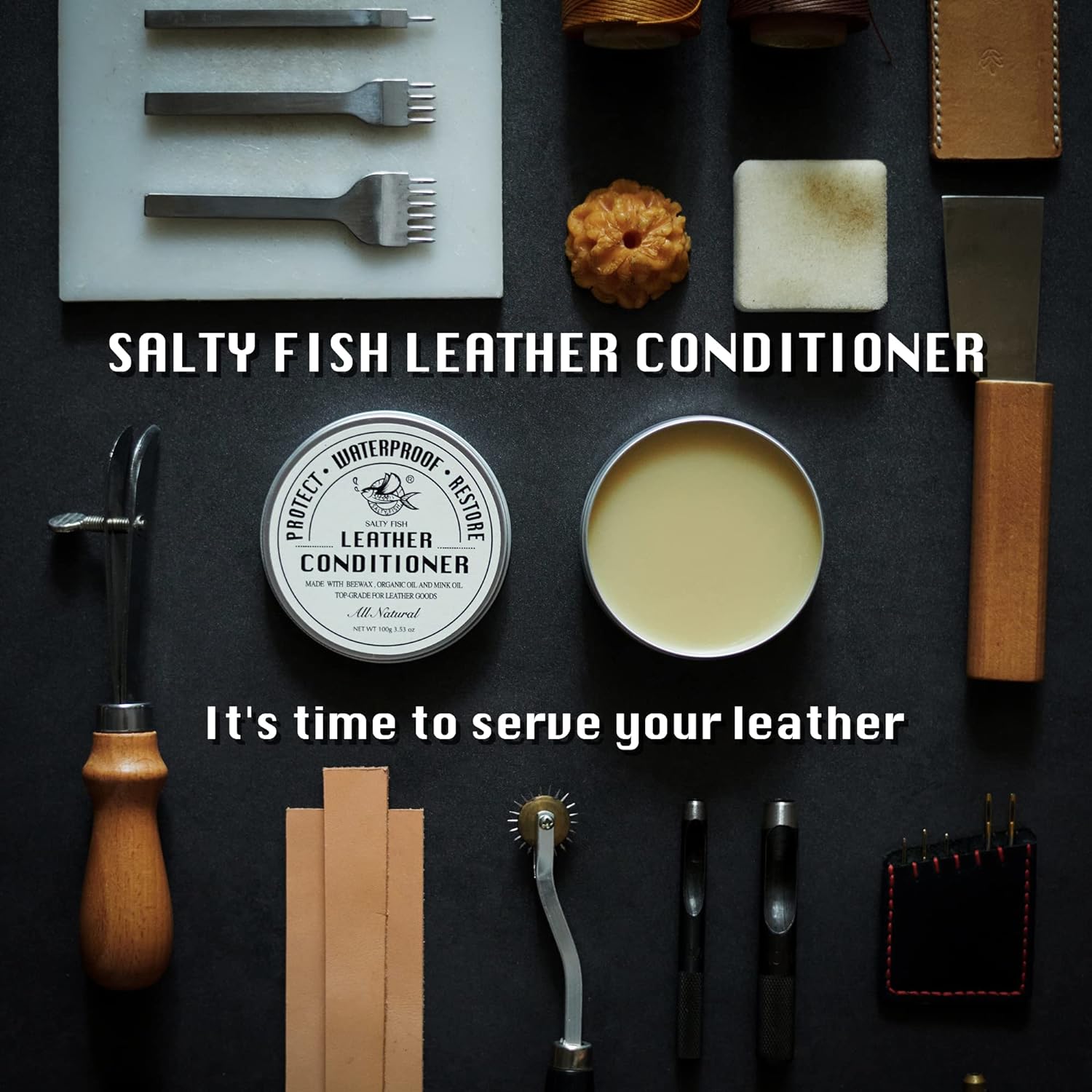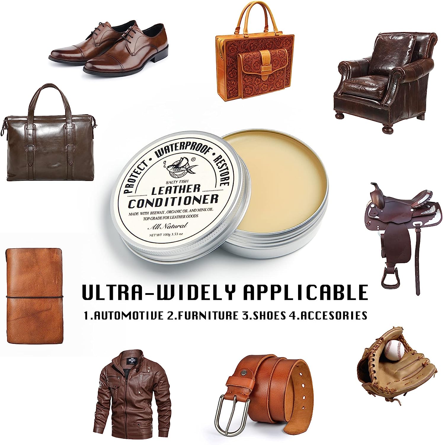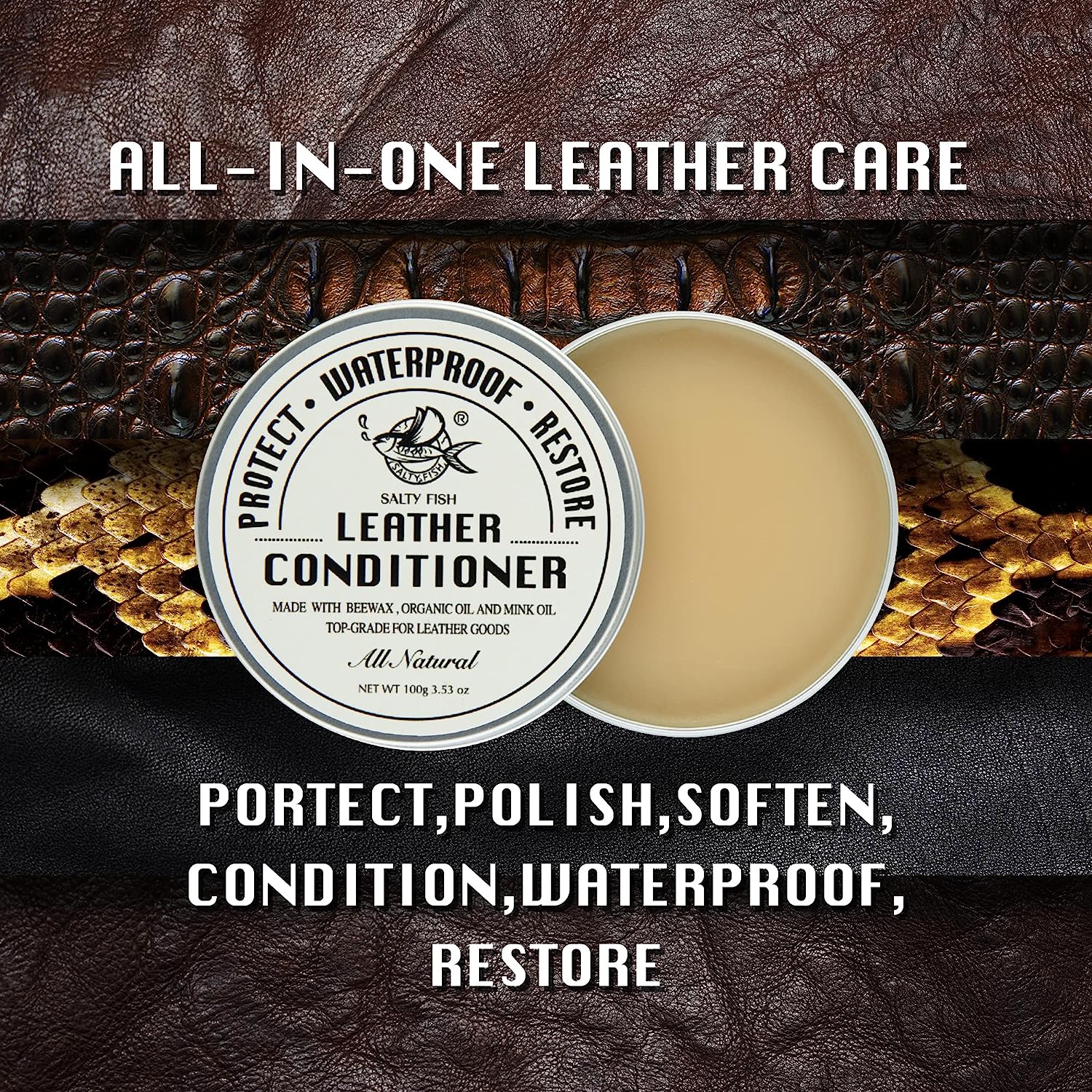 • ALL-IN-ONE LEATHER CARE SOLUTION: More than just a leather conditioner and cleaner, it protects, softens, repairs, polishes, repairs dryness, cracks and more in one. Of course waterproof, the beeswax in the ingredients forms a natural waterproof layer. Defense against water stains and salt. Everyday leather treatment with SALTY FISH leather conditioner to keep your leather radiant, not afraid of harsh environments