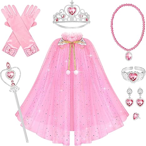 10 Pieces Princess Cape Set Dress up Clothes for Little Girls Party Cosplay Cloak with Jewelry Tiara Crown Wand Gloves