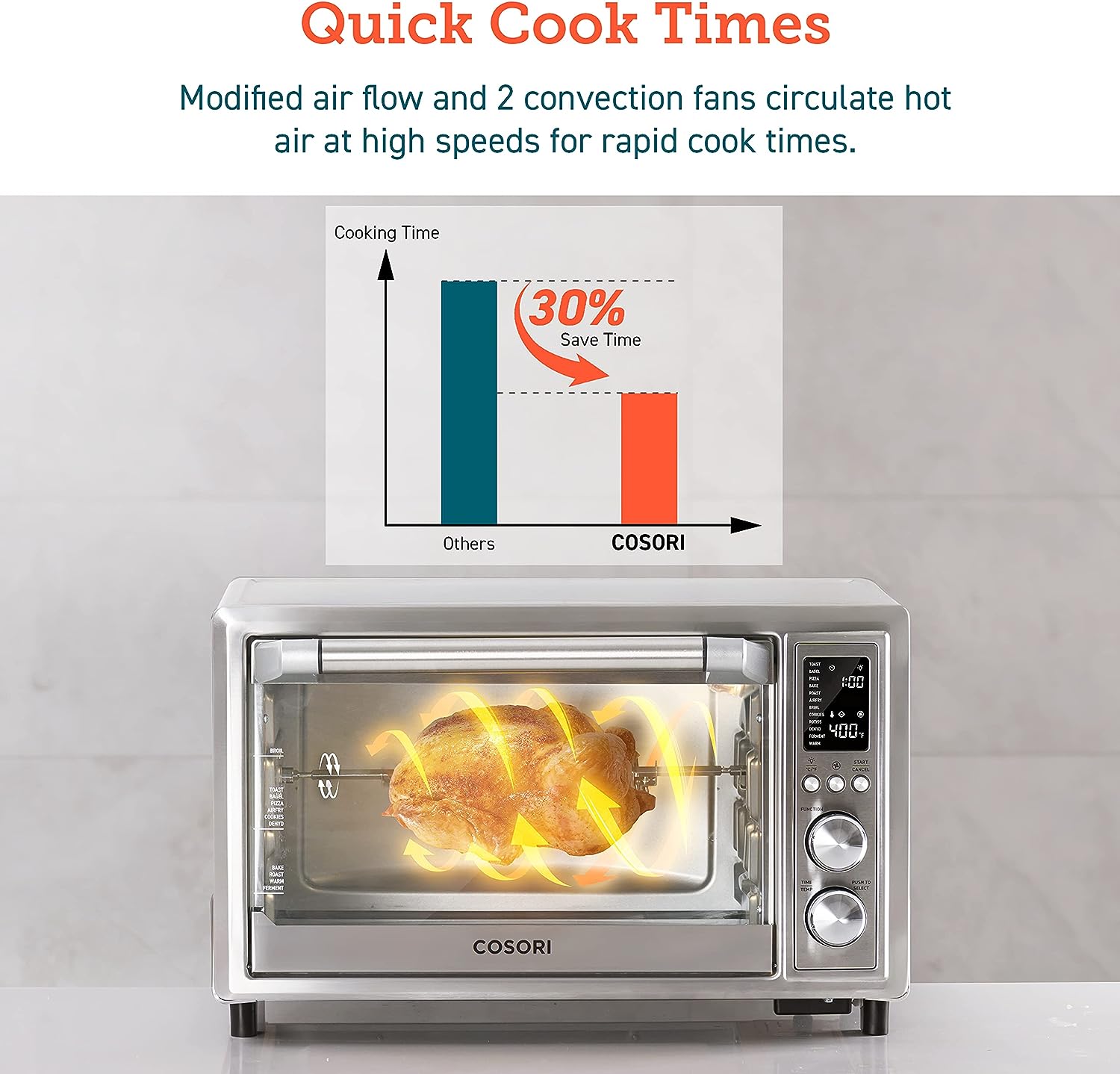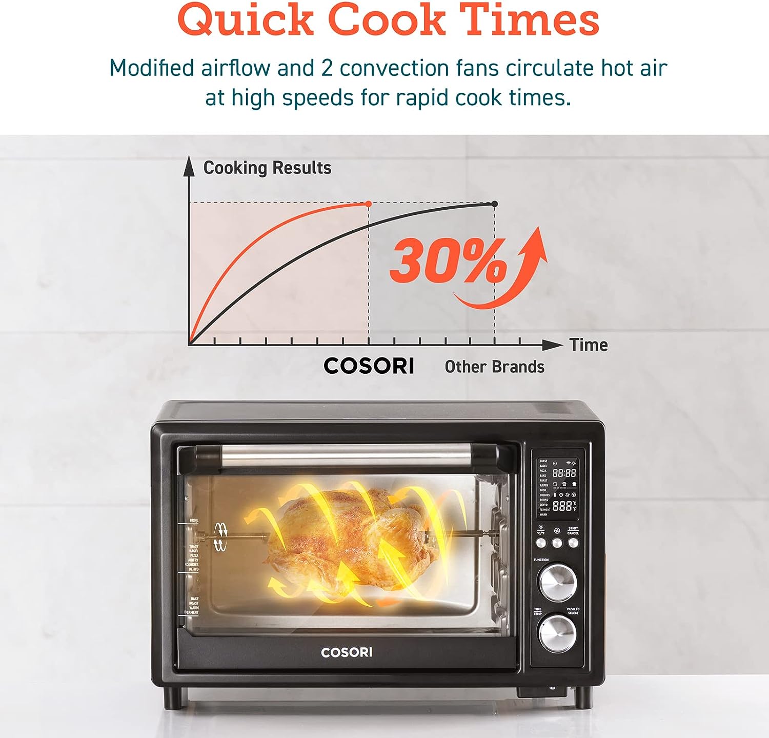 • ENJOY MEALS IN MINUTES: 6 heat elements, a 2-speed fan, and temperatures up to 450°F allow cooking up to 30% faster than a traditional convection oven