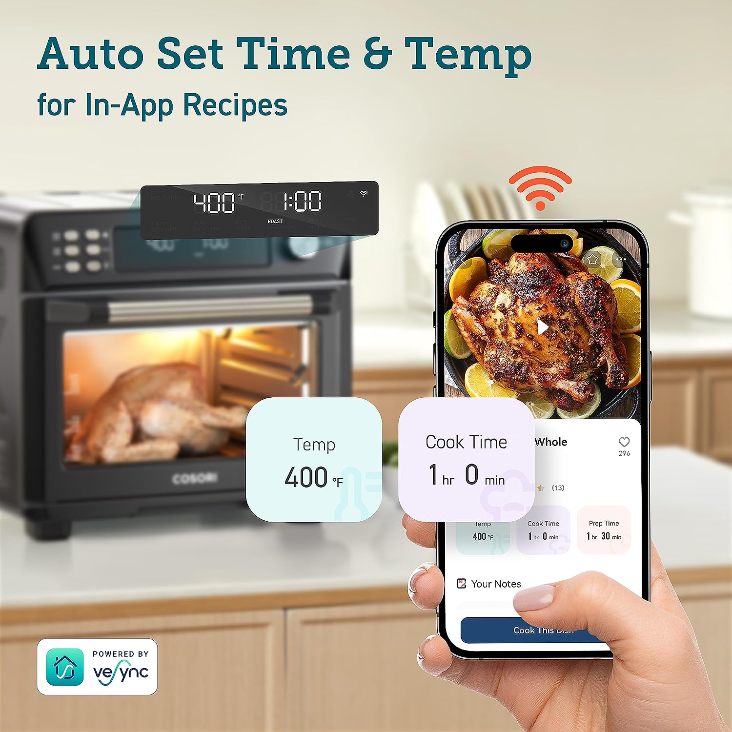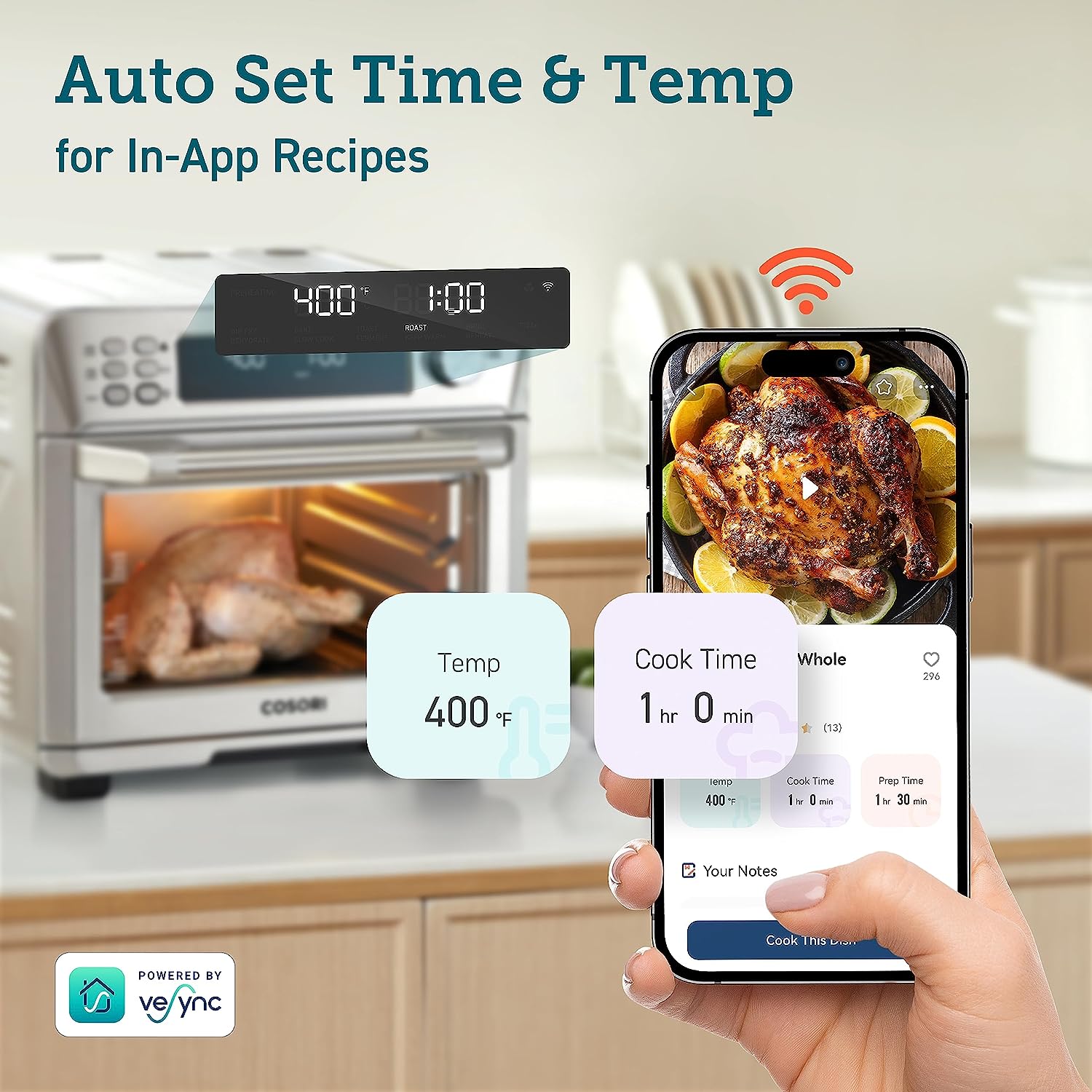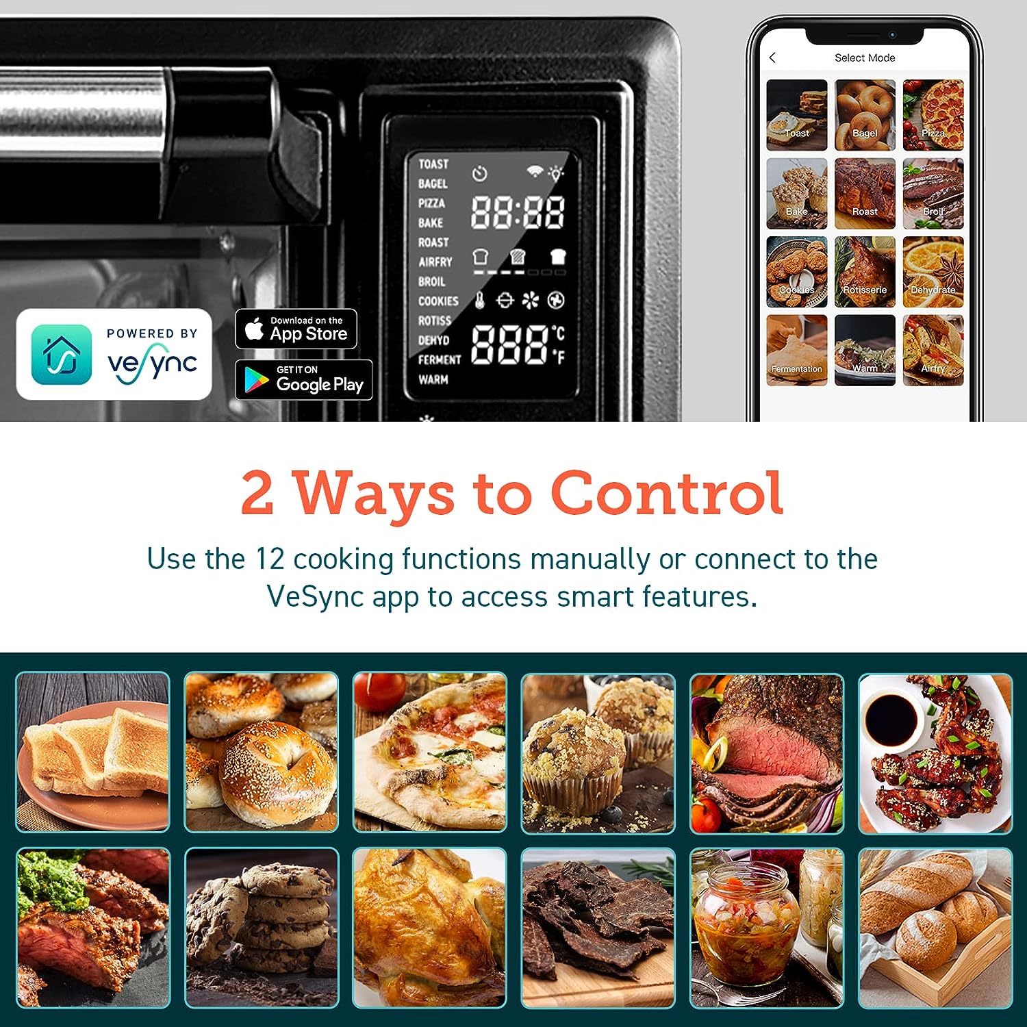 • COOK SMARTER: Just pick up your smartphone and tap the VeSync app to make meals at the touch of a button, or enjoy hands-free control of your toast oven by connecting to the Amazon Alexa or Google Assistant