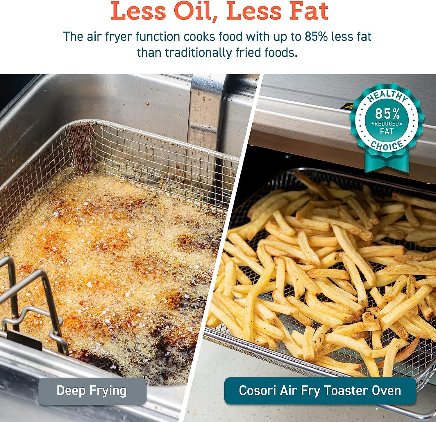 • Rapid Heat Circulation: The air fryer’s rapid heat circulation cooks food quickly and evenly, with up to 85% less fat than traditionally deep-fried food