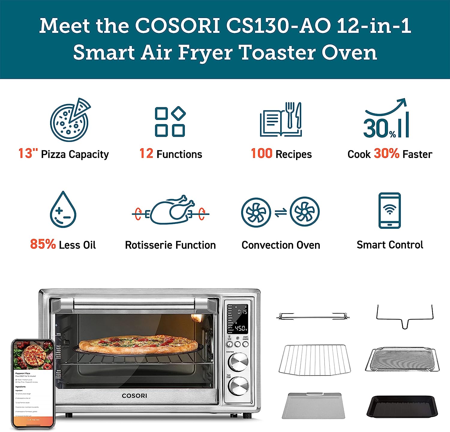 COSORI CS100-AO 12-in-1 Smart Air Fryer Toaster Oven.