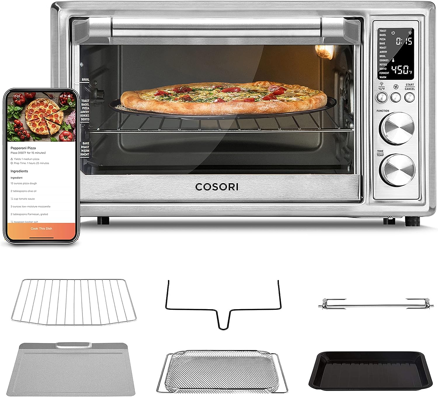 COSORI Toaster Oven Air Fryer Combo, 12-in-1, 26QT Convection Oven Countertop, with Toast, Bake, and Broil, Smart, 6 Slice Toast, 12'' Pizza, 75 Recipes&Accessories, Black