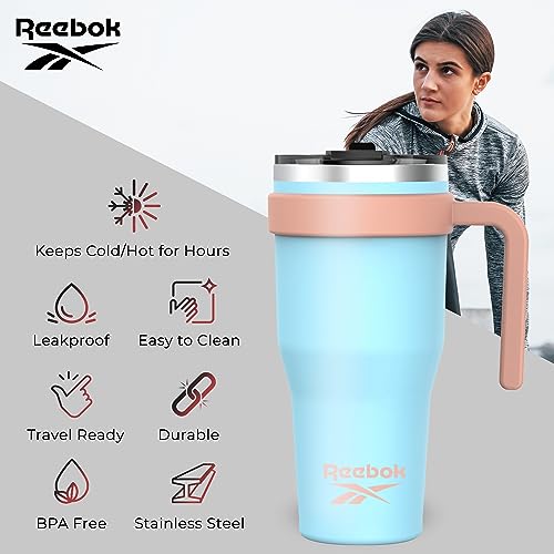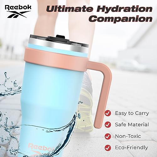 Reebok Stainless Steel Tumbler With Lifestyle Design - 40oz Tumbler Two Tone - Double Wall Tumbler Vacuum Insulated - Leak Proof Tumbler For Men & Women (Blue/Peach)