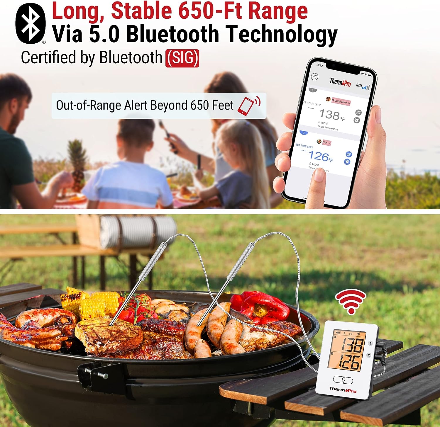 ThermoPro TP25 500ft Wireless Bluetooth Meat Thermometer with 4 Temperature Probes Smart Digital Cooking BBQ Thermometer for Grilling Oven Food Smoker Thermometer, Rechargeable