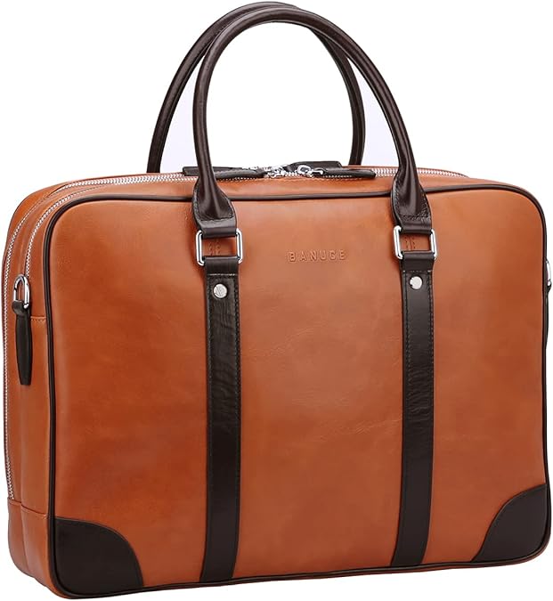 Banuce Full Grains Leather Briefcase for Men 14 Inch Laptop Bag Business Work Bags Attache Case Brown