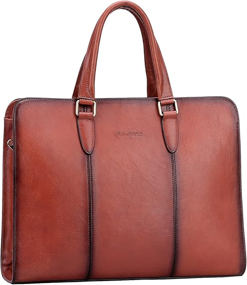 Banuce Stylish Full Grains Italian Leather Briefcase for Women 14 Inch Laptop Bag Business Work Bag Brown