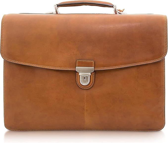 Tony Perotti Bella Russo Men's Italian Leather Messenger Bags - Triple Compartment Briefcases for Men - Tanned Leather