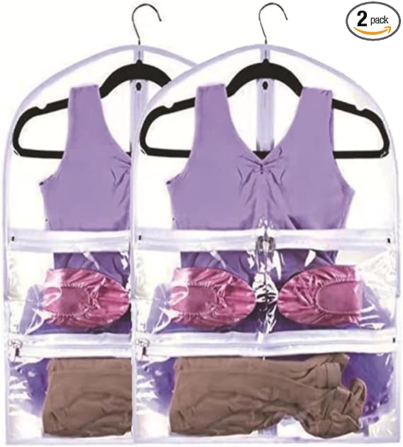 Clear Kids Dance Garment Bag for Hanging Clothes, 35 Inch Waterproof PVC Travel Garment Bag with 3 Pockets for Dance Costumes, Sports, Skating, Theatre, Beauty Pageants & More