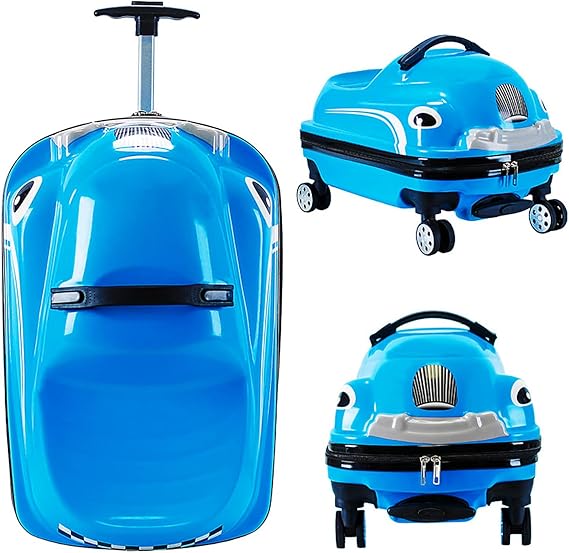 20" Ride-On Suitcase for Kids, Kid Luggage w/Spinner Wheels, Trolley Case Sit on Rolling Carry on Luggage for Girls Boys Travel, Blue