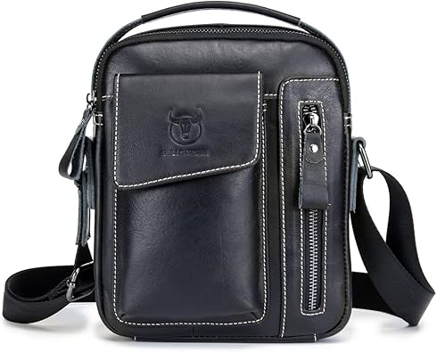 KPYWZER Genuine Leather Shoulder Bag Small Men Messenger Pack Handbag Sling Crossbody Bag Man Purse for Business