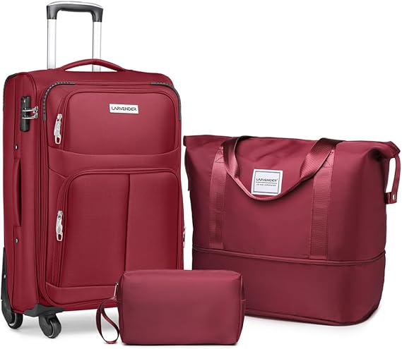 LARVENDER Softside Luggage Sets 3 Piece, Expandable Carry on Luggage 22x14x9 Airline Approved with TSA Lock Spinner Wheels, Lightweight Rolling Suitcase for Men and Women, Wine Red