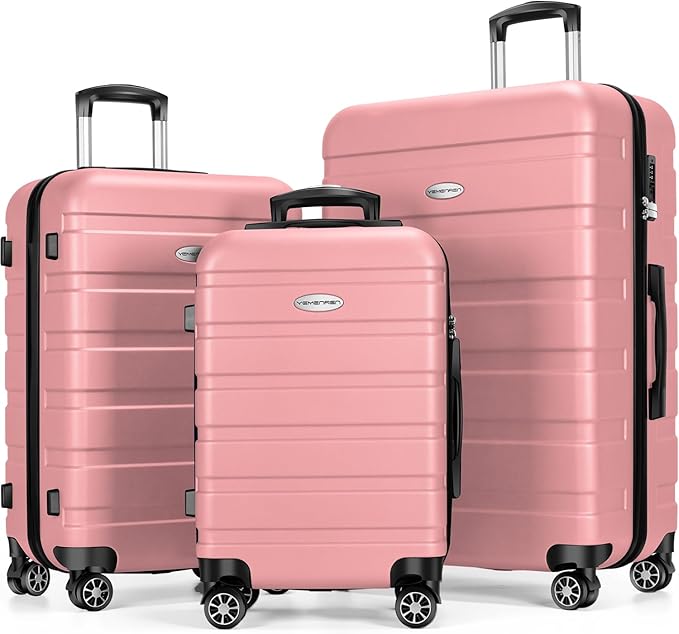 Luggage Sets Hardside Lightweight Suitcase with Spinner Wheels TSA Lock, 3-Piece Set (20/24/28), Pink
