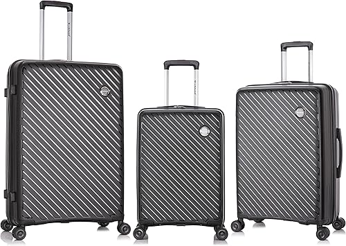 Rockland Prague Hardside Luggage with Spinner Wheels, Black, 3-Piece Set (20/24/28)