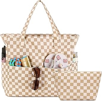 LOIDOU Large Tote Beach Bag Waterproof Sandproof Beach Pool bag with Zipper & Wet Pockets Shoulder Bag Travel Teacher Grocery