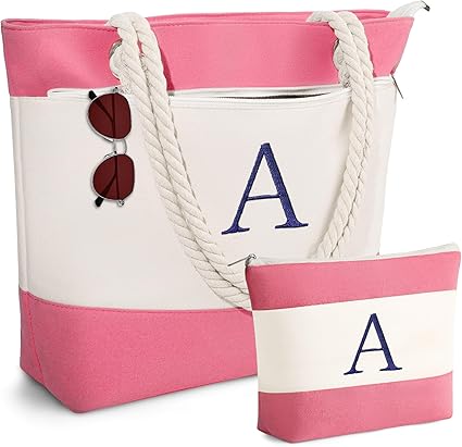YOOLIFE Christmas Gifts for Women - Initial Canvas Tote Bag & Makeup Bag, Birthday Gifts for Women Mom Teacher Friend Sister