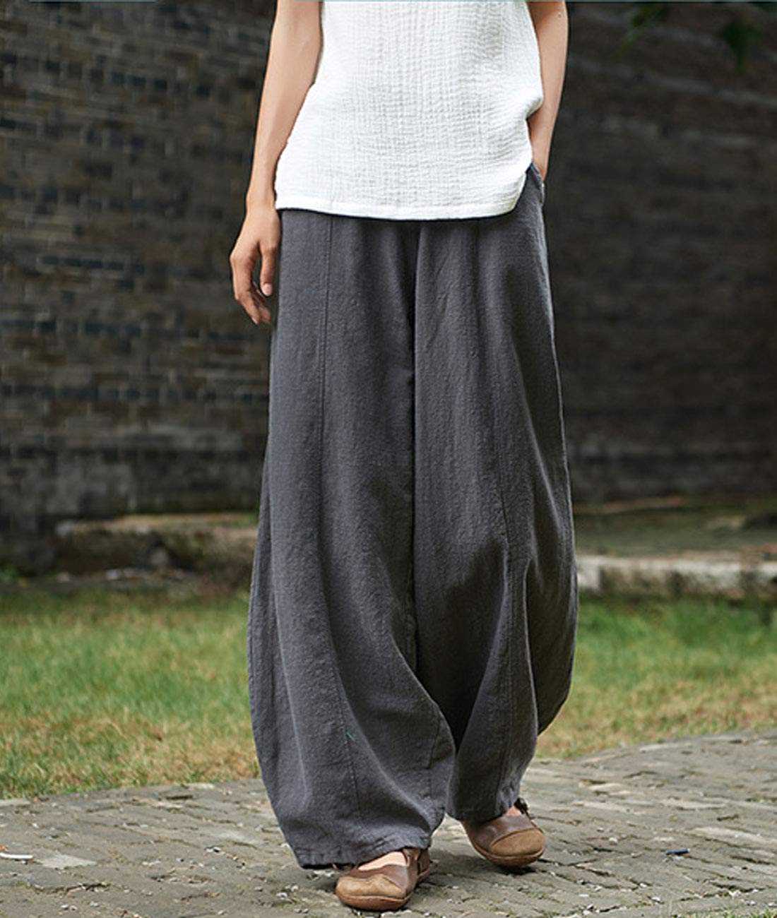 IXIMO Women's Casual Cotton Linen Baggy Pants with Elastic Waist Relax Fit Lantern Trousers Gray M