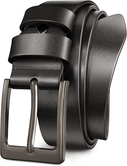 Black Belt Men Casual, Genuine Leather Belts for Men, Golf Belt, Full Grain Leather Belt 1.5" Width