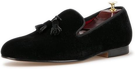 HI&HANN Tassel Men's Velvet Loafer Shoes Slip-on Loafer Round Toes Smoking Slipper