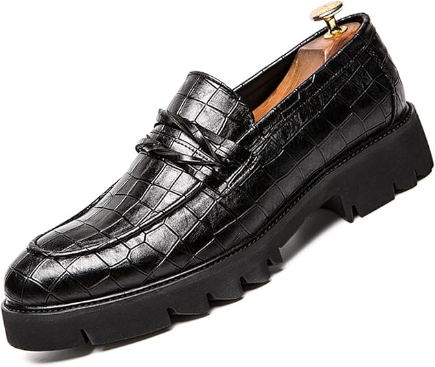 Men's Leather Platform Slip on Dress Shoes, Fashion Printed Casual Comfortable Business Formal Shoes