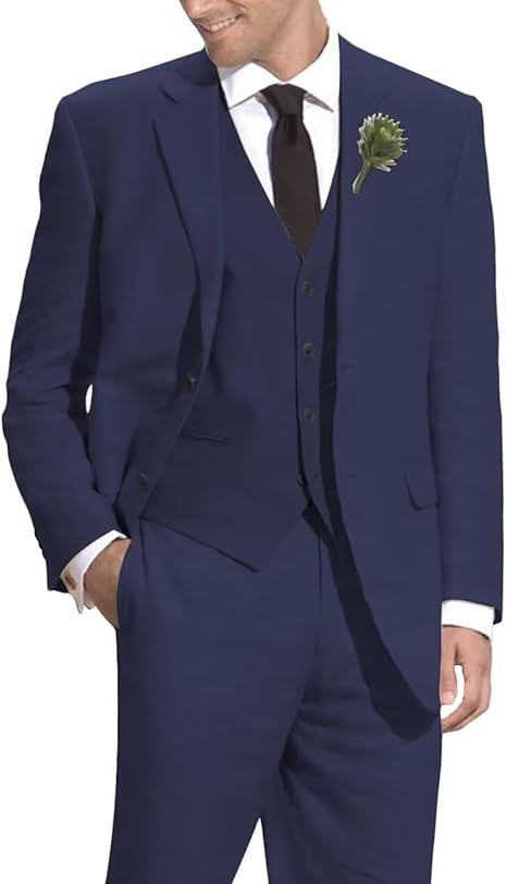 Wangyue Linen Men's 3 Piece Suits Wedding Suits Slim Fit Groomsmen Tuxedo Prom Summer Jacket Suit