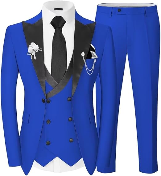 Wangyue Men's 3 Piece Tuxedo Suit Slim Fit Double Breasted Suit Men Wedding Party Prom Suits Sets