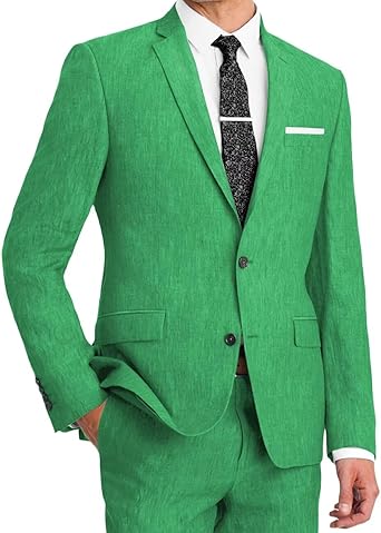 Wangyue Men's Linen Suit 2 Piece Causal Summer Suits Slim Fit Wedding Suit Groomsmen Prom Tuxedo Suits