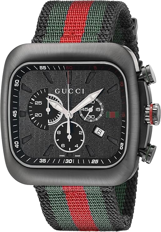 Gucci Coupe Black Stainless Steel with Striped Nylon Strap Men's Watch(Model:YA131202)