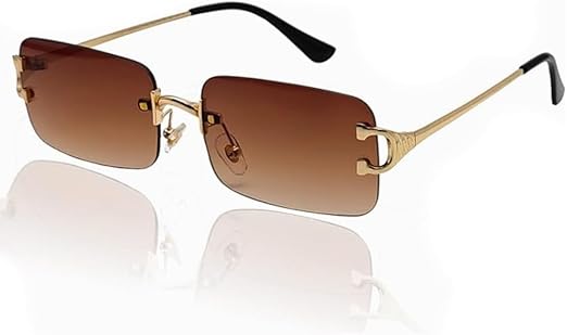Rimless Sunglasses 90s Frameless Square Brown Tinted Lens Trendy Cool Retro Shades 90's Unisex Designer Rectangle Eyewear Hip Hop Gold Wire Frame Sun Glasses for Women Men