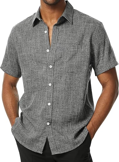 Men's Texture Linen Casual Button Down Shirt Summer Hipster Regular Fit Short Sleeve Shirts