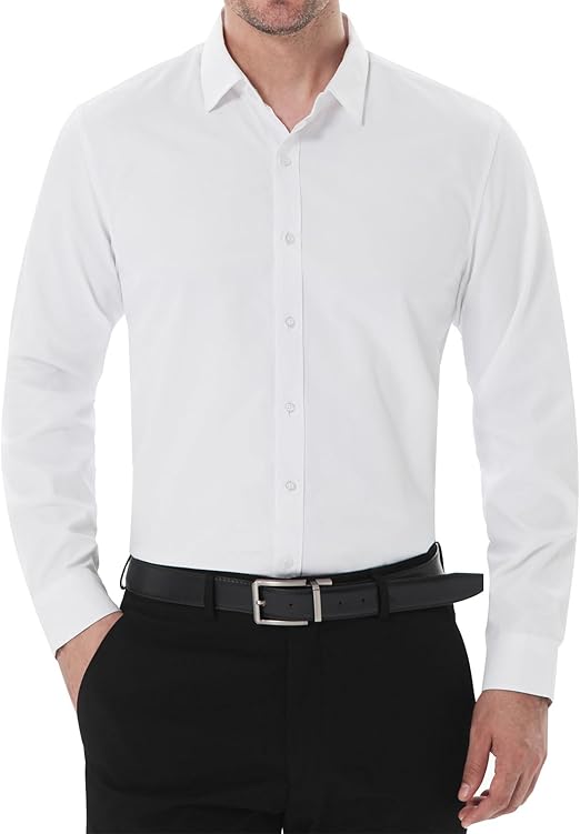 SIR7 Men's Slim Fit Stretch Dress Shirt Solid Color Microelastic Long Sleeve Casual Soft Business Button Up Shirts