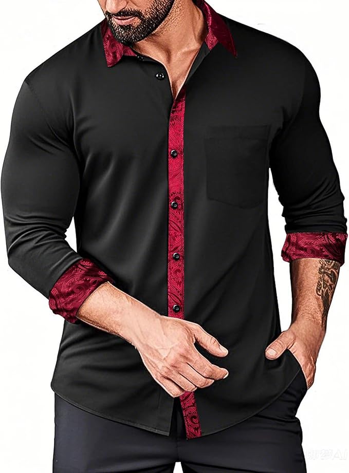 YOHOWA Mens Dress Shirts Business Button Down Long Sleeve Casual Collar Cuff Contrast Formal Shirts Wedding Party Casual Prom
