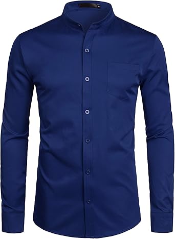 ZEROYAA Men's Banded Collar Slim Fit Long Sleeve Casual Button Down Dress Shirts with Pocket