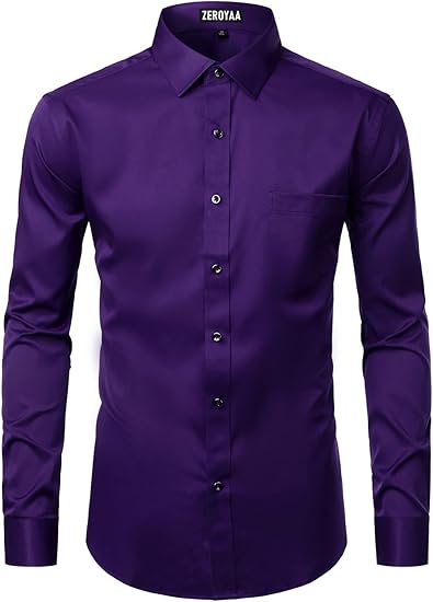 ZEROYAA Men's Business Formal Slim Fit Long Sleeve Button Up Dress Shirts with Pocket