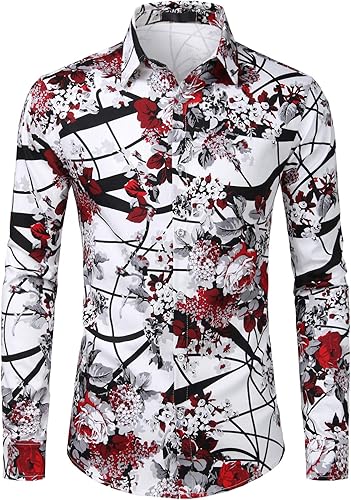 ZEROYAA Men's Floral Slim Fit Long Sleeve Cotton Casual Button Down Dress Shirt