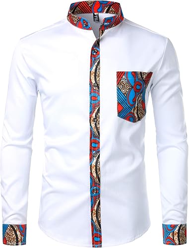 ZEROYAA Men's Hipster Patchwork Design Slim Fit Long Sleeve Button up Mandarin Collar Shirts