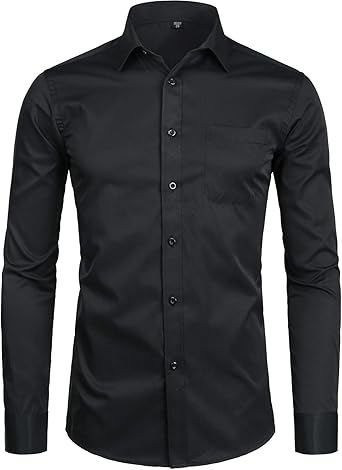 ZEROYAA Men's Long Sleeve Dress Shirt Solid Slim Fit Casual Business Formal Button Up Shirts with Pocket