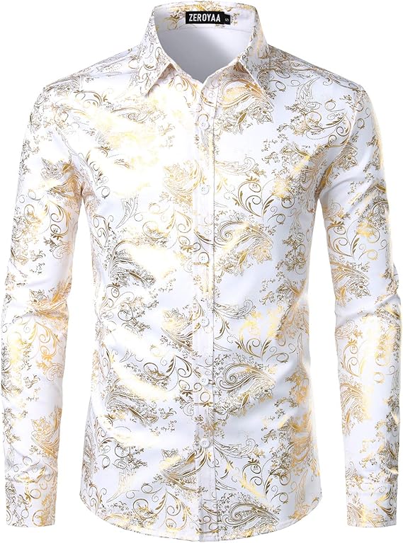 ZEROYAA Men's Luxury Paisley Dress Shirt Shiny Floral Printed Button Down Shirts for Party Prom