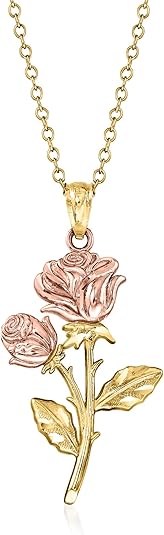 Ross-Simons 14kt 2-Tone Gold Rose Pendant Necklace