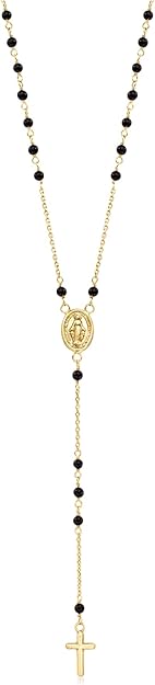 Ross-Simons Italian Onyx Bead Rosary Necklace in 18kt Yellow Gold