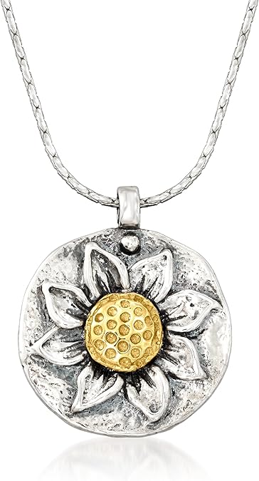 Ross-Simons Sterling Silver Sunflower Pendant Necklace With 14kt Yellow Gold. 18 inches